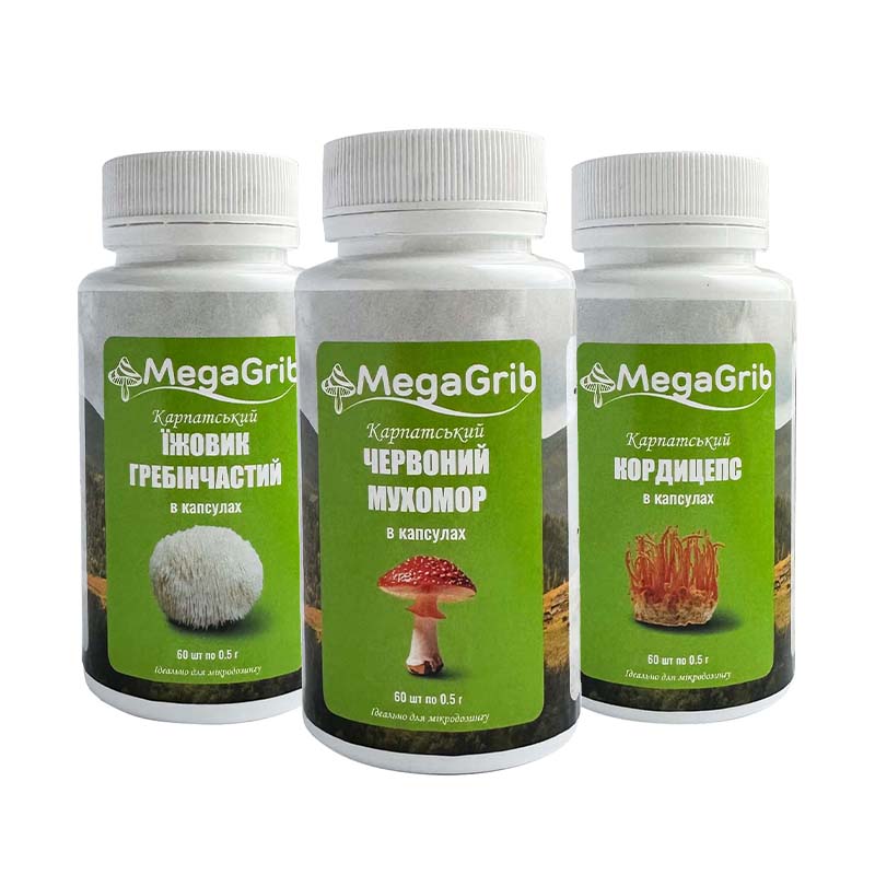 Енергетичний мікс у капсулах: червоний мухомор, їжовик та кордицепс